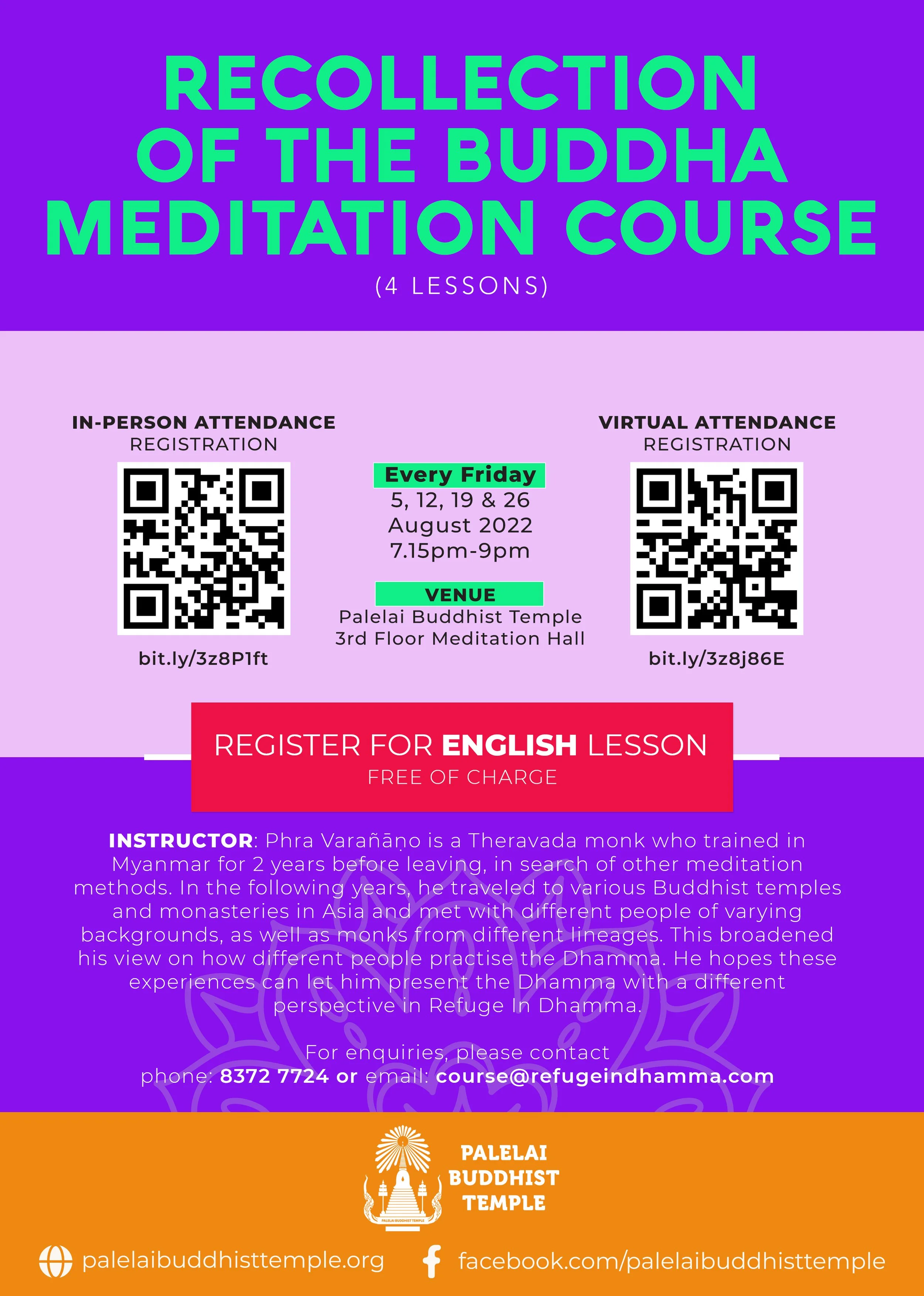 《Recollection of The Buddha Meditation Course》is open for registration.
