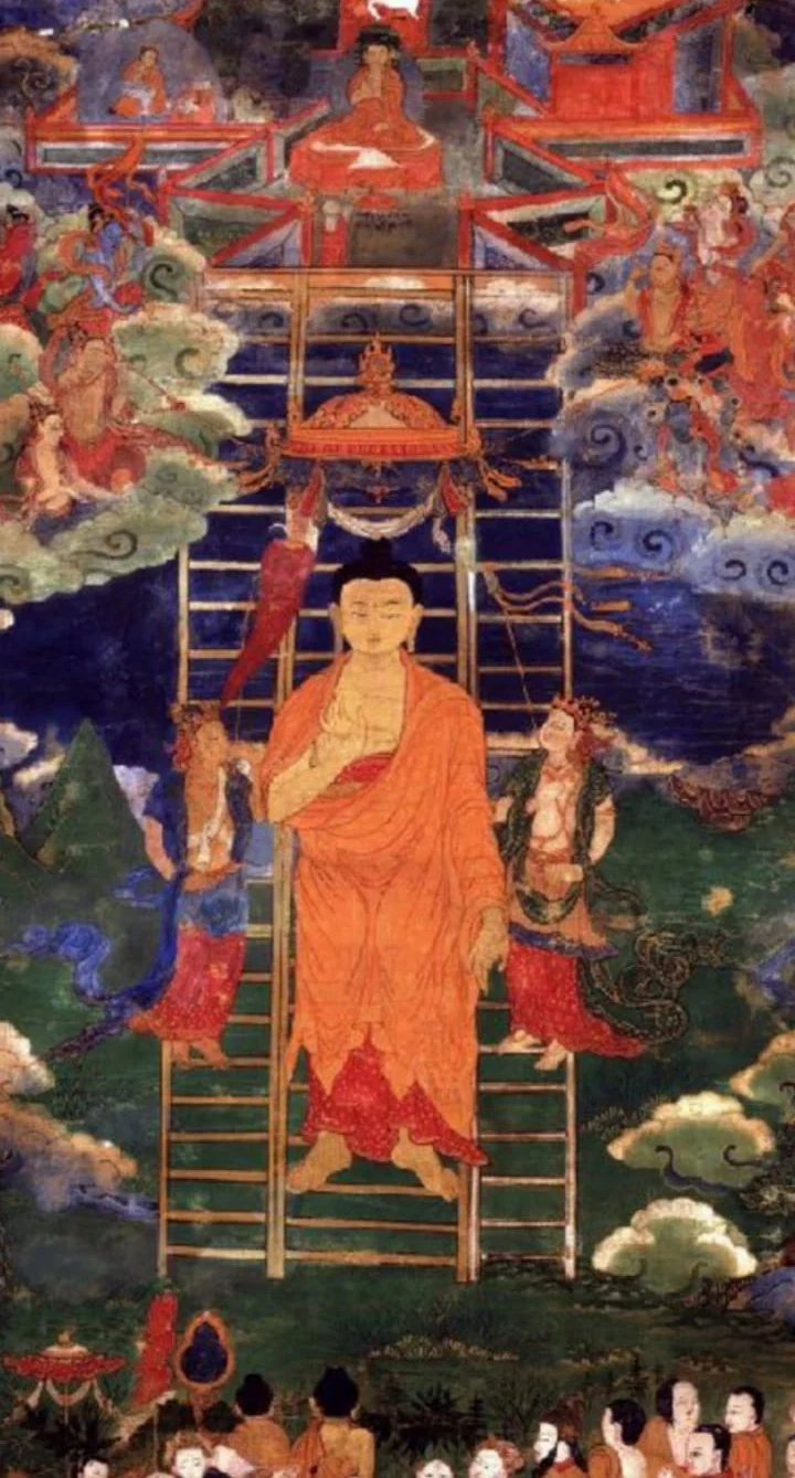 The Buddha spent his 7th Rains Residence Retreat in the Tavatimsa Heaven to teach the Abdhidhamma (Higher Dhamma) to his late mother Queen Mahamaya, as a mark of gratitude to her. When the Buddha completed the teaching to his mother, he descended from Tavatimsa heaven to earth in Sankassa (Sankissa) City on the last day of the Rains Residence Retreat.
