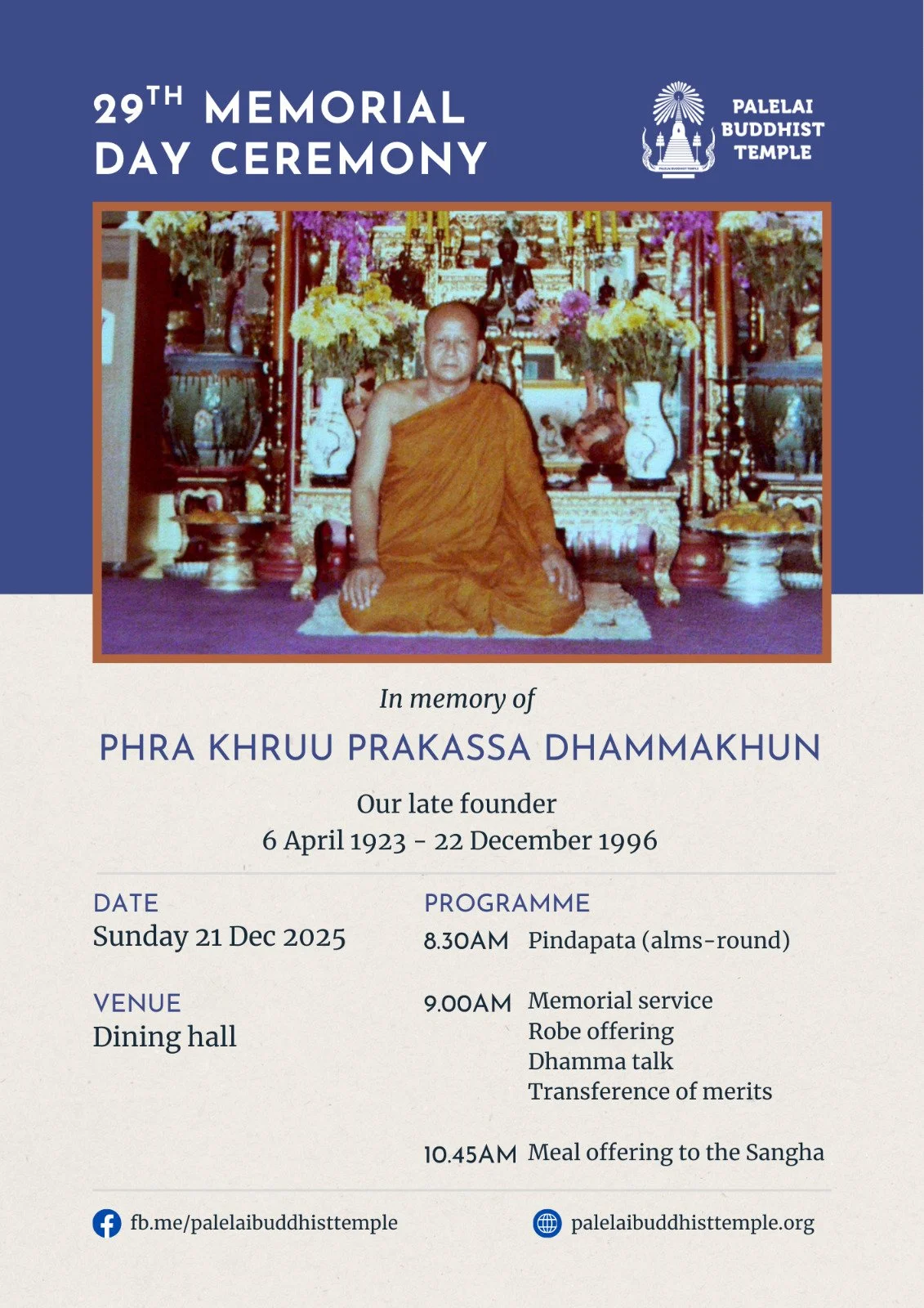 In memory of the passing of our Founder - Phrakhru Prakassa Dhammakun